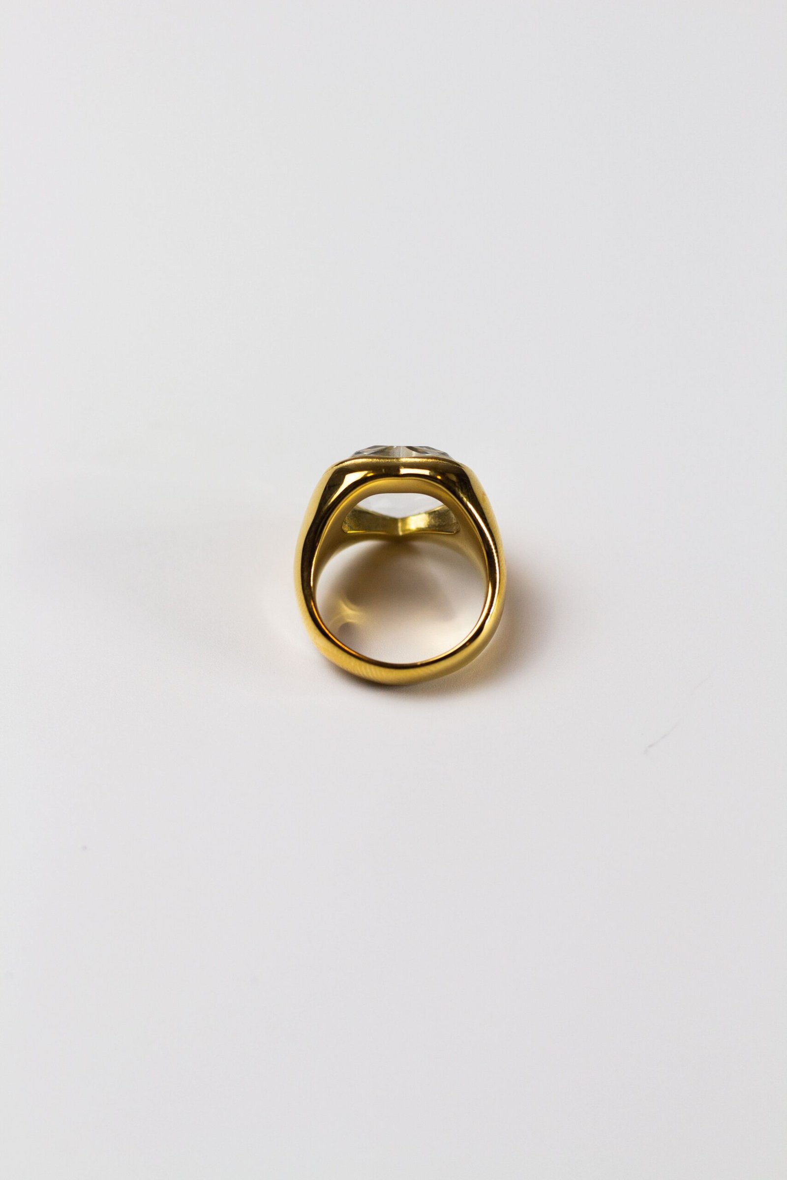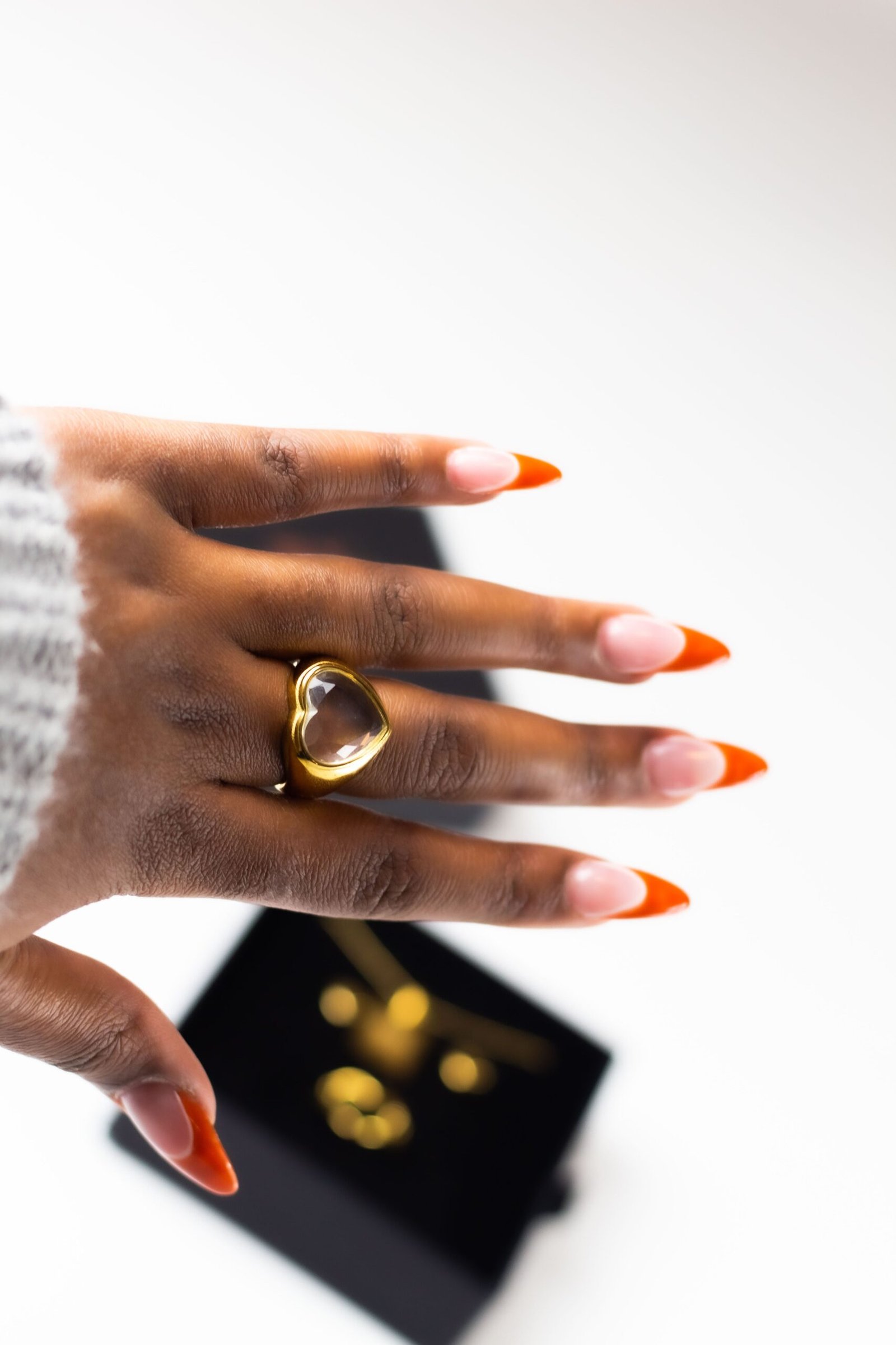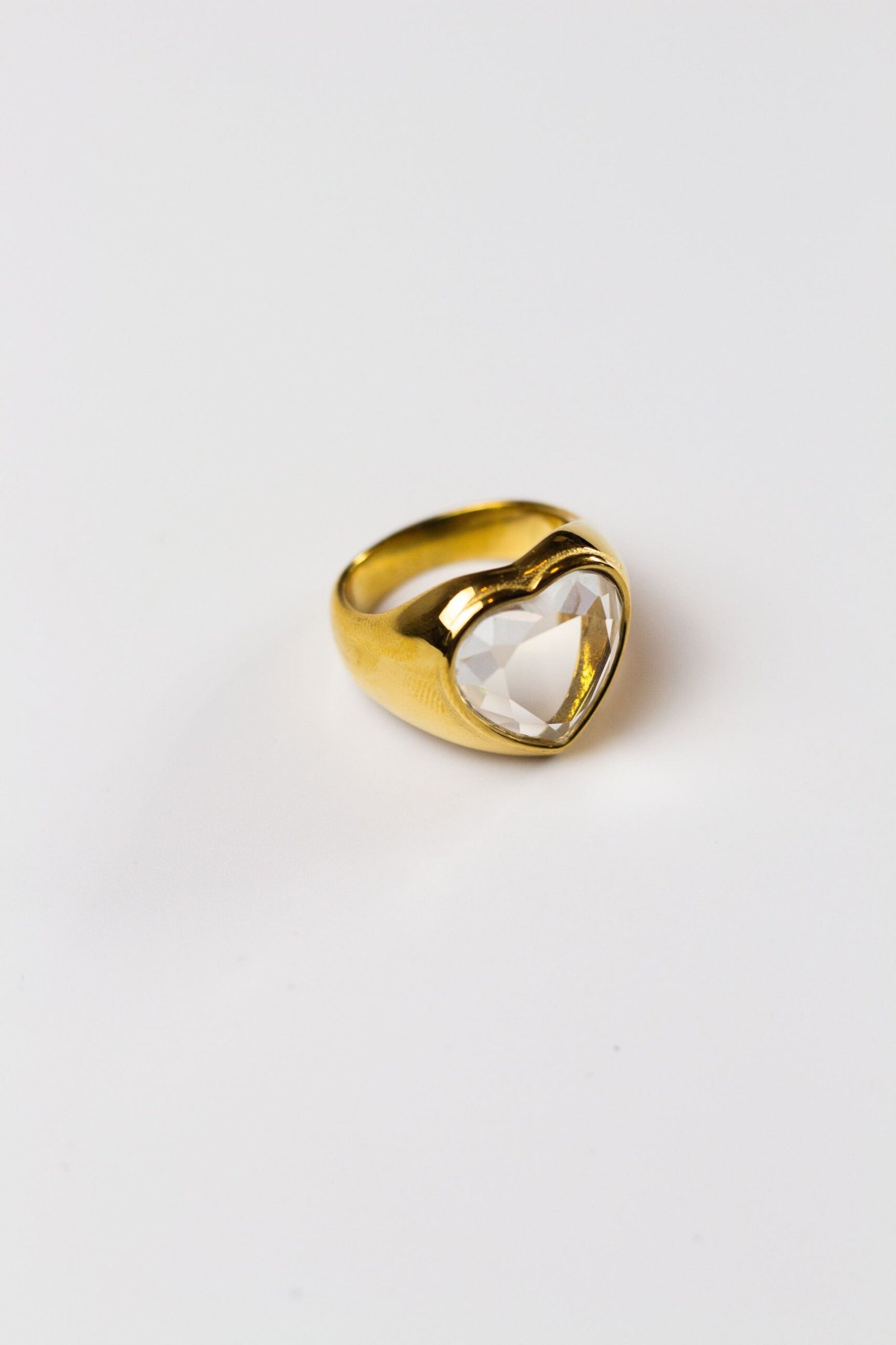 Elegant clear heart ring with a translucent centerpiece and 18K gold plated stainless steel band. A modern statement ring, waterproof, tarnish-resistant & perfect for everyday wear.
