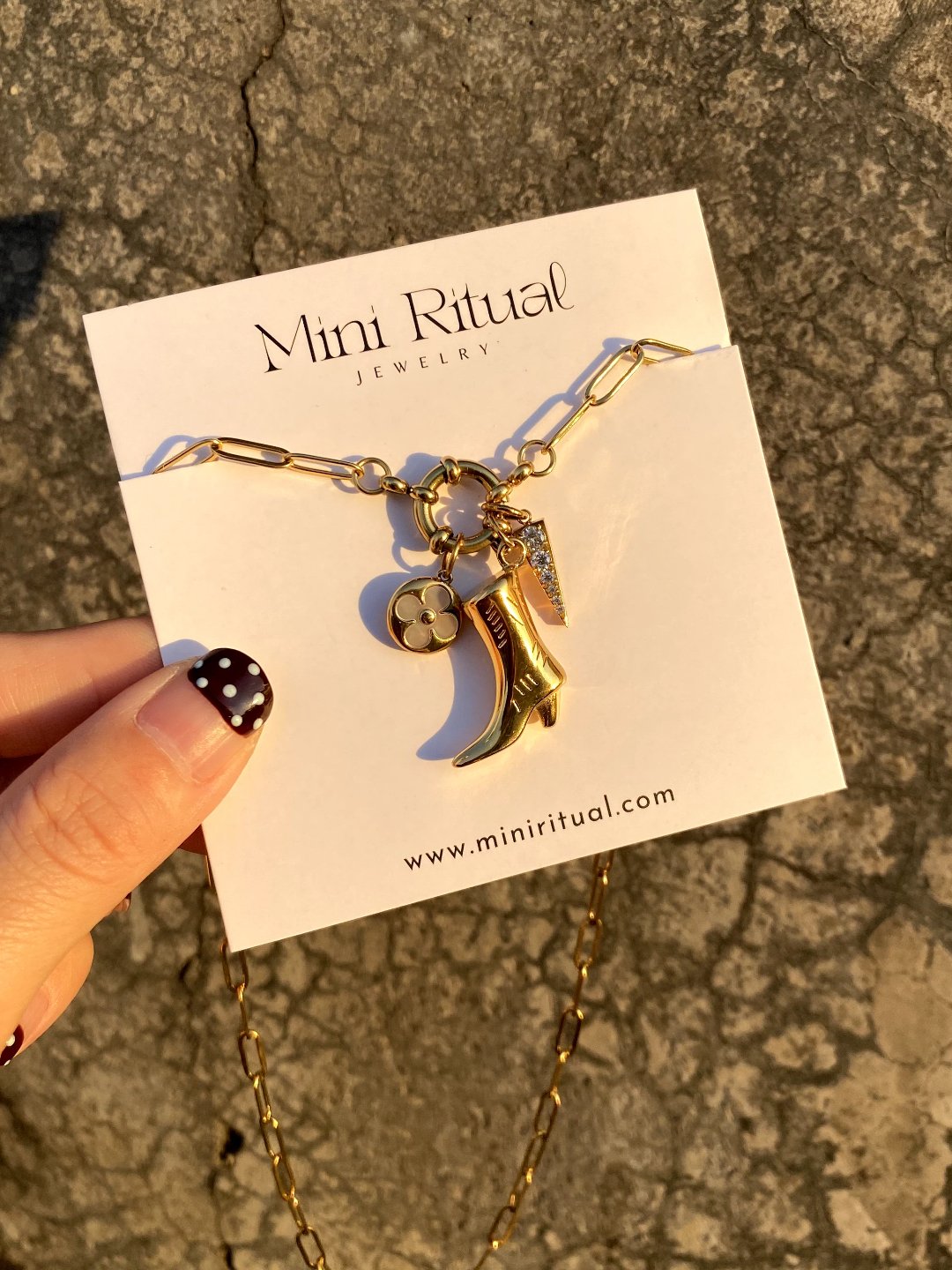 Stylish gold boot charm made from 18K gold plated stainless steel. Tarnish-free, hypoallergenic and perfect for charm necklaces and bracelets.