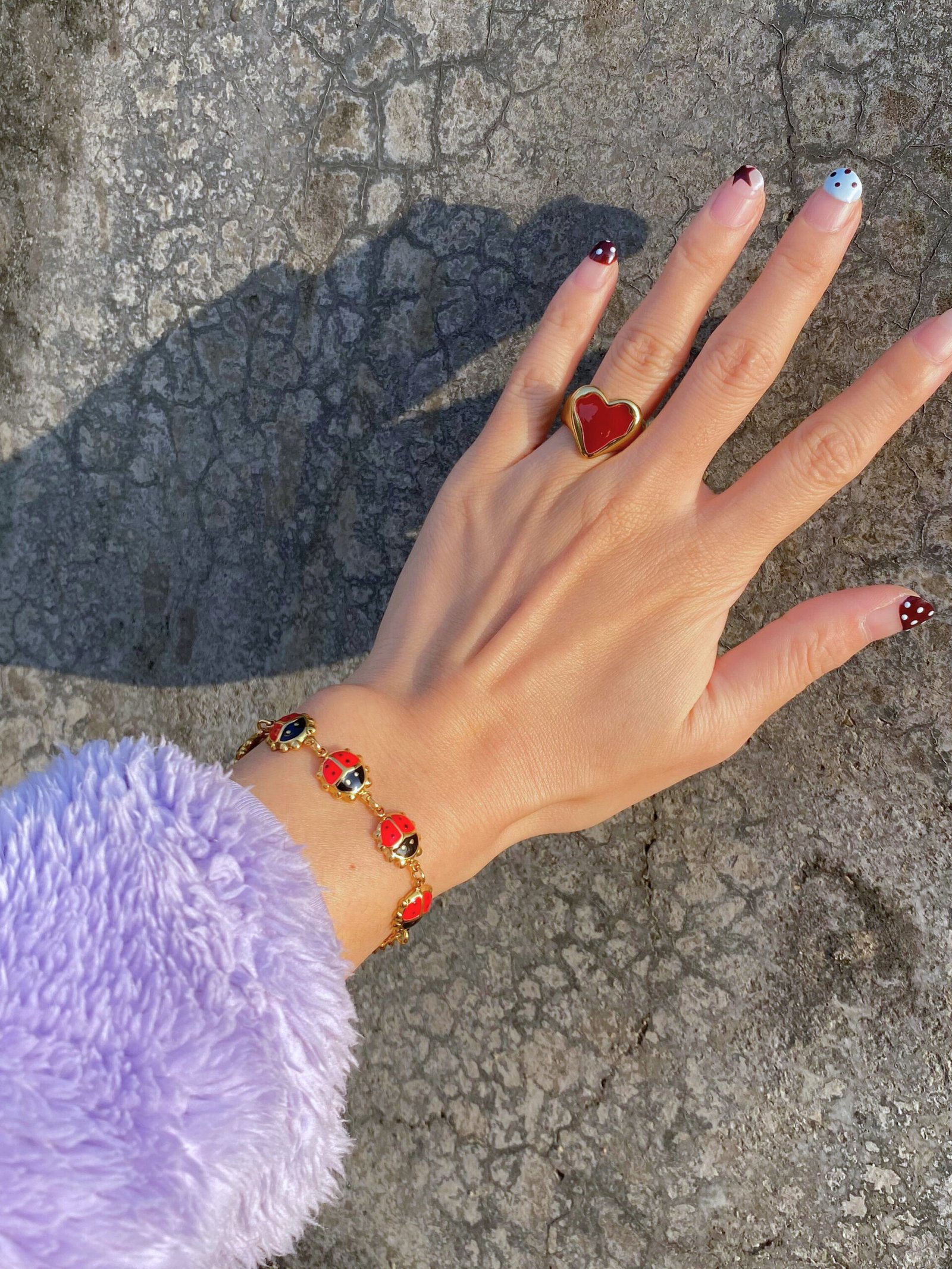 Meet the Lucky Heart Ring, a sweet little ring that adds a splash of color and a touch of luck to your day. Made from 18K gold plated stainless steel, it’s lightweight, durable, and easy to wear every day.