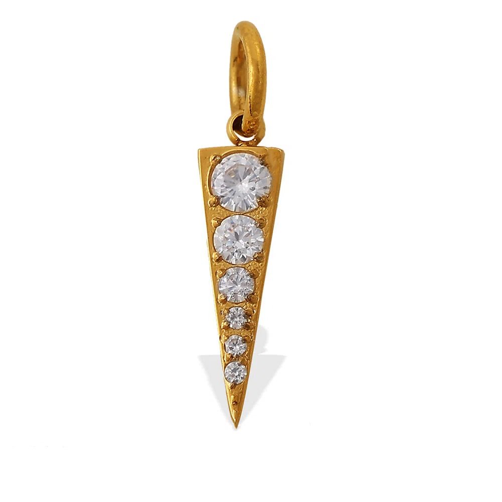 Cute gold pizza slice charm made from 18K gold plated stainless steel with sparkling rhinestones. Tarnish-free, hypoallergenic and perfect for charm jewelry.