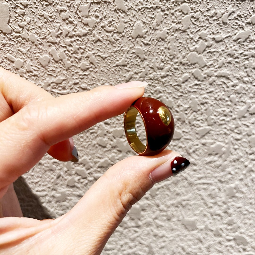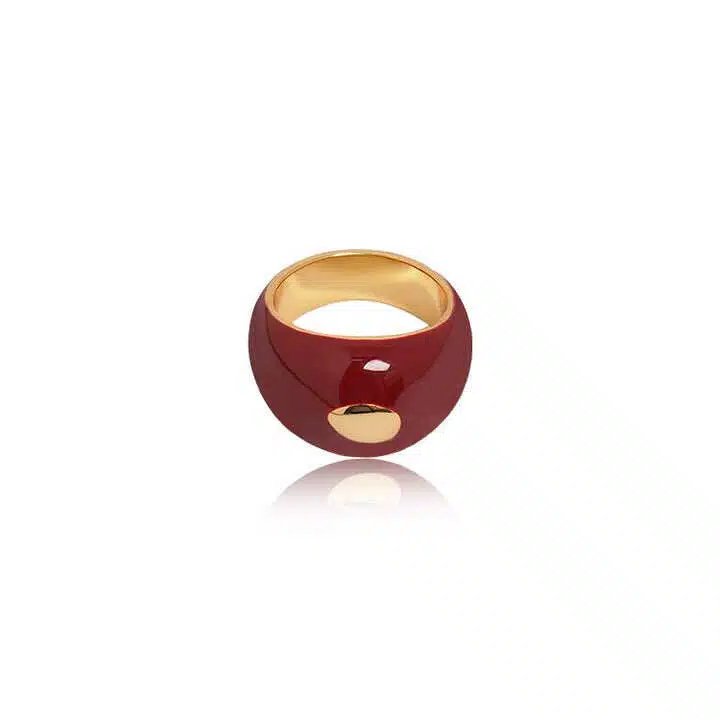 Bold ruby dome statement ring crafted from 18K gold plated stainless steel. Smooth glossy finish, tarnish-resistant, and designed to elevate everyday outfits with modern elegance.